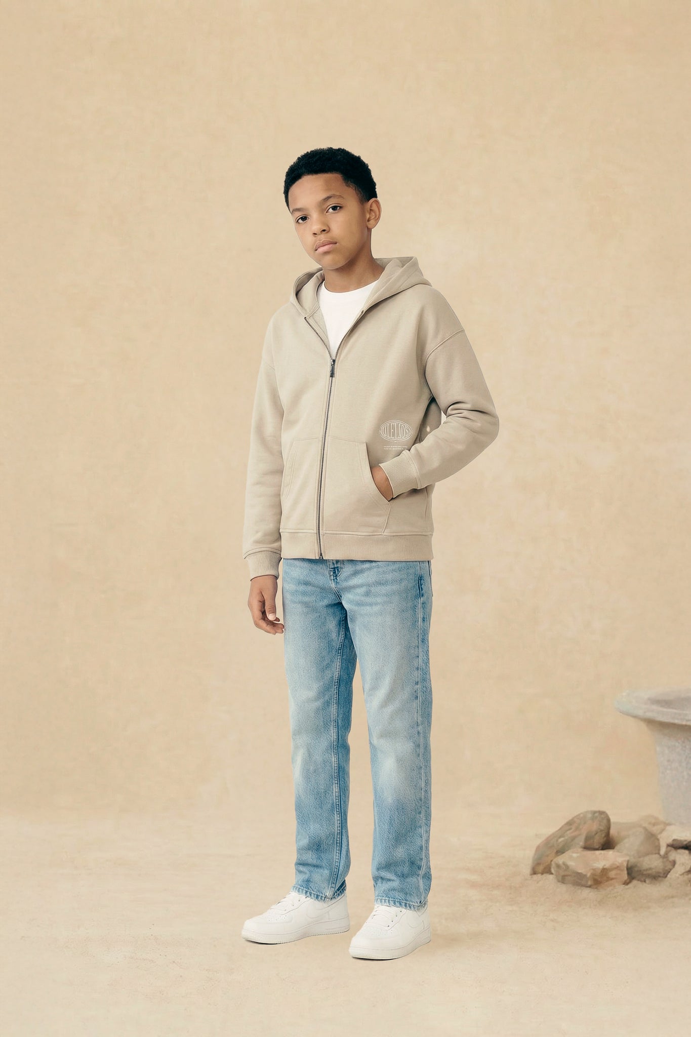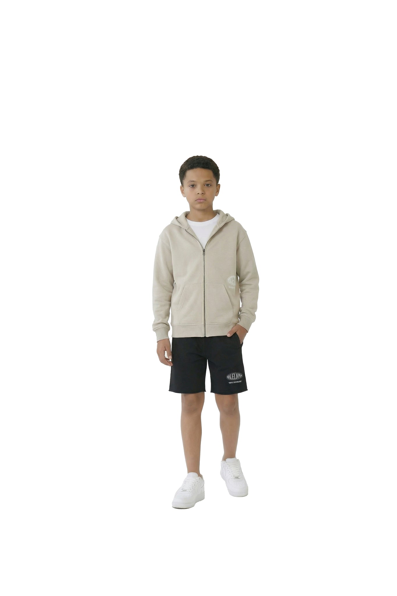 Malelions Junior Relaxed Lifestyle Zip Hoodie | Cream/Off-White