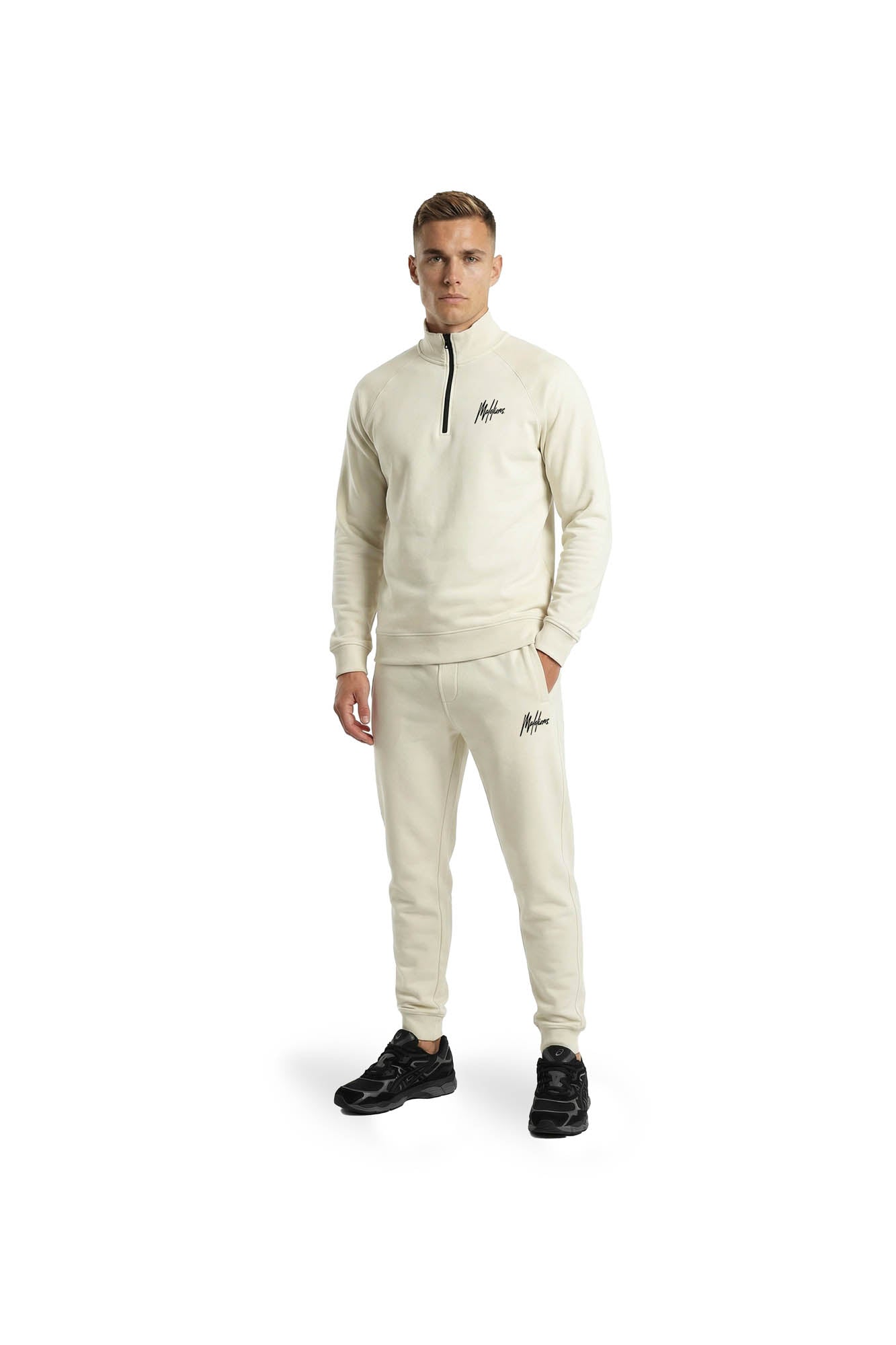 Malelions Sport Logo Raglan Half Zip Sweater | Off-White