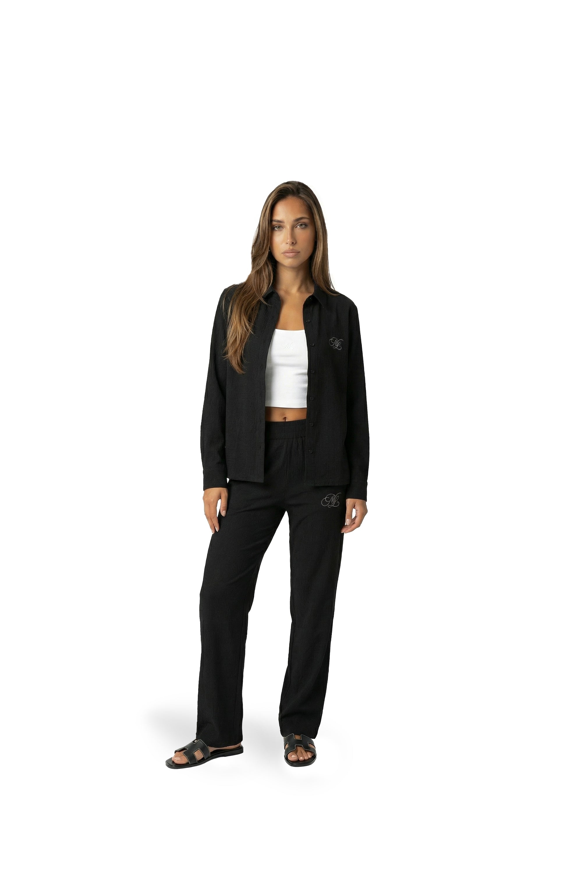 Malelions Women Seersucker Loose Fit Pants | Black
