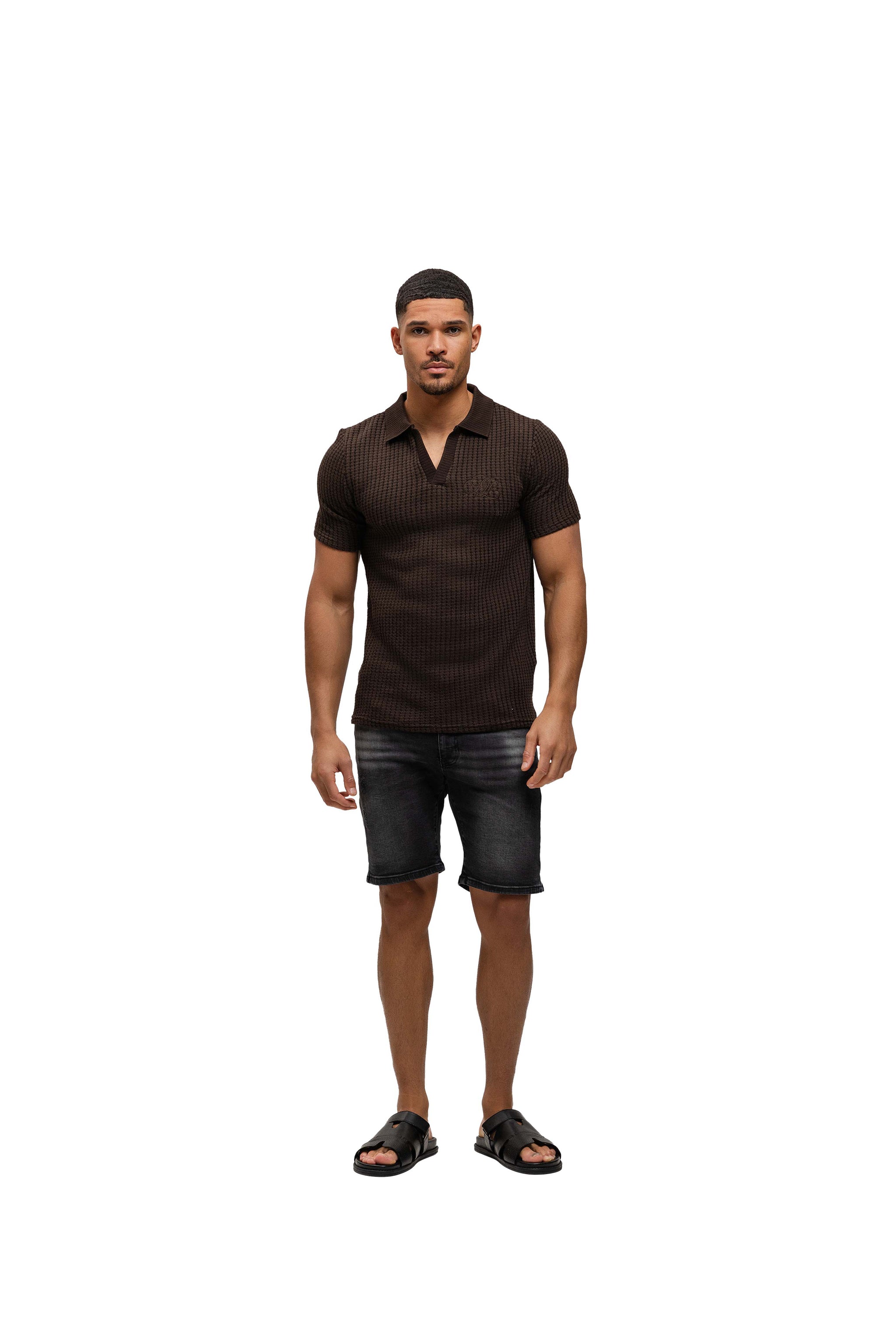 Malelions Men Chunky Waffle Buttonless Polo | Dark Brown