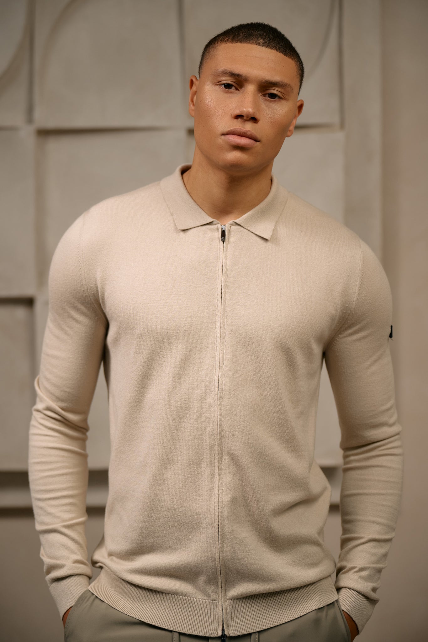 Malelions Men Knitted Zip Cardigan | Light Taupe