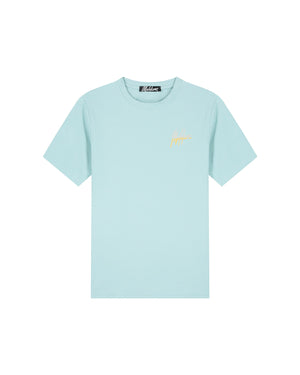 Malelions Men Split Slim T-Shirt | Dusty Turquoise/Taupe