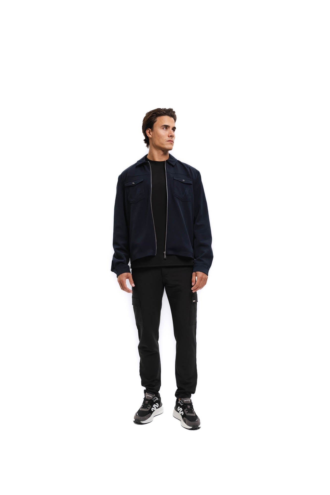 Malelions Men Textured Zip Overshirt | Navy