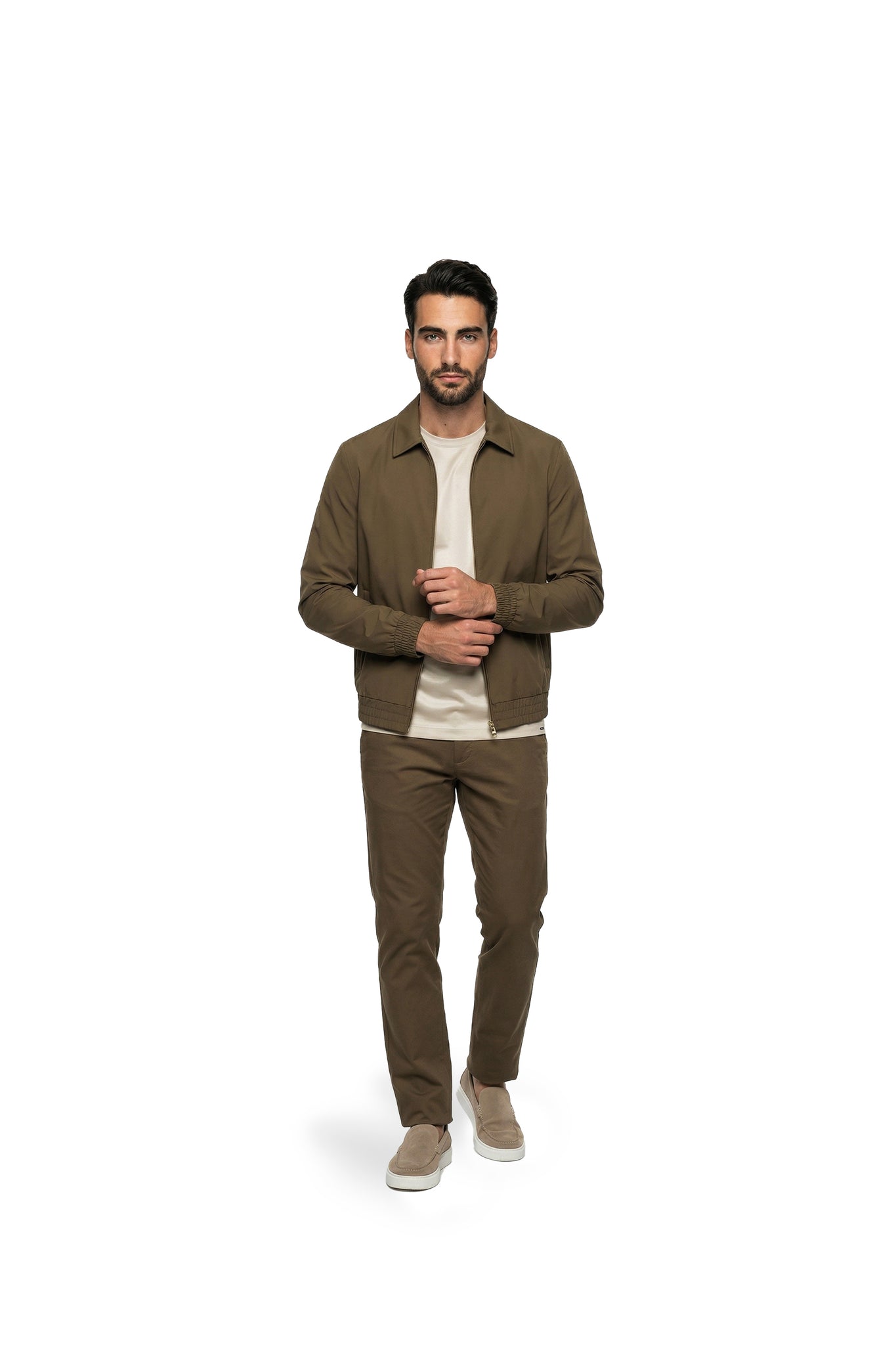 De elastische boorden aan de mouwen en zoom zorgen voor een aangesloten fit en extra comfort, terwijl de verfijnde belijning en matte afwerking dit jack tot een veelzijdig item maken – ideaal voor zowel casual als geklede looks.