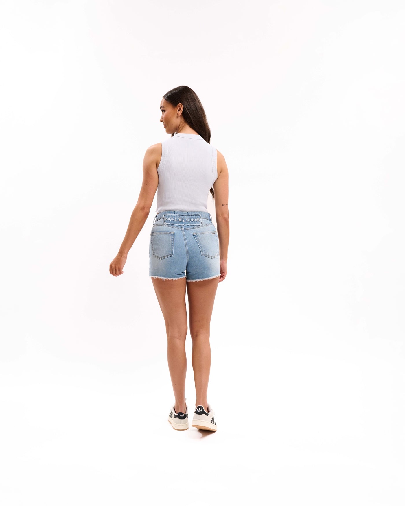 Malelions Women Damaged Patch Denim Shorts | Light Blue